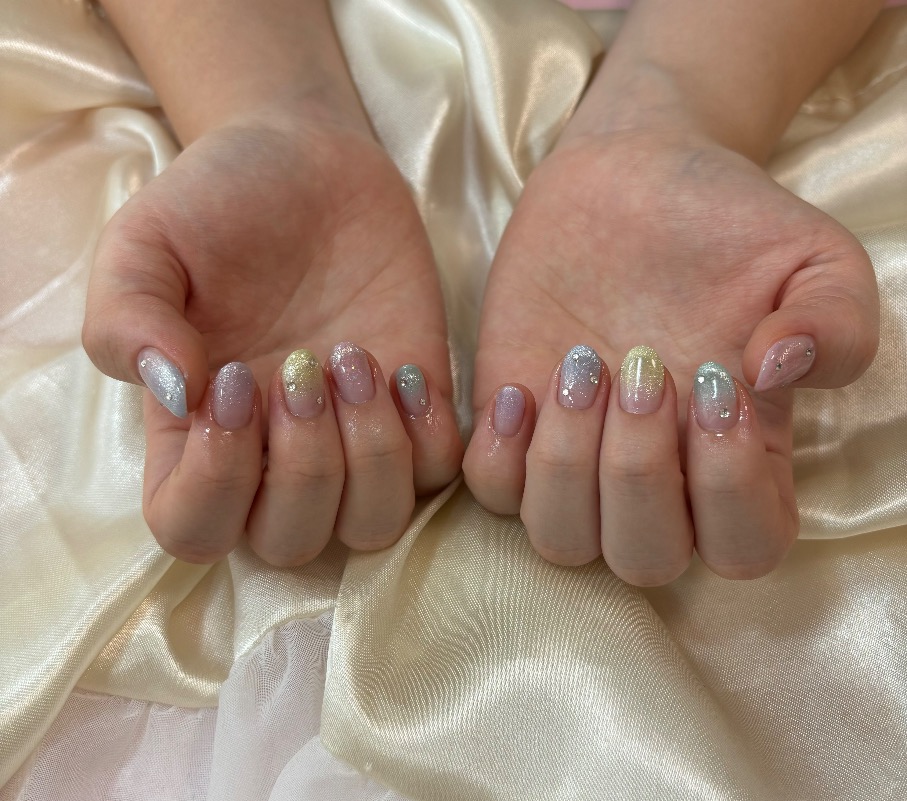 ラメやストーンをアクセントにすると、爽やかさがさらに引き立ちます。