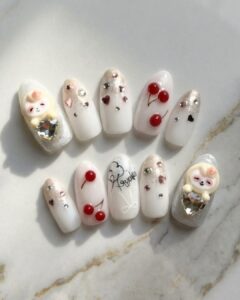 キラキラしたグリッターとの組み合わせも年齢関係なく人気のデザインです。